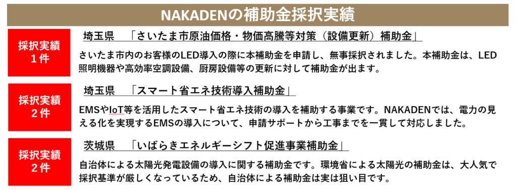 NAKADENは、補助金申請サポートも実績があります!