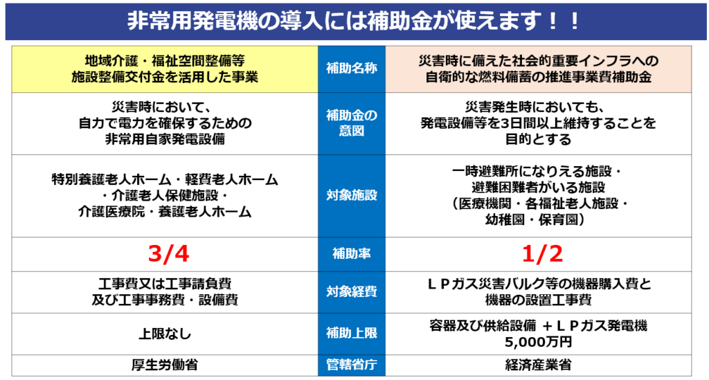 非常用発電機の導入には補助金が使えます!!